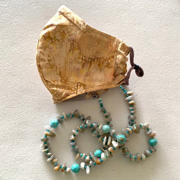 ...designed with semi-precious stones, pearls, ethnic beads, repurposed watch parts... and now, face masks.